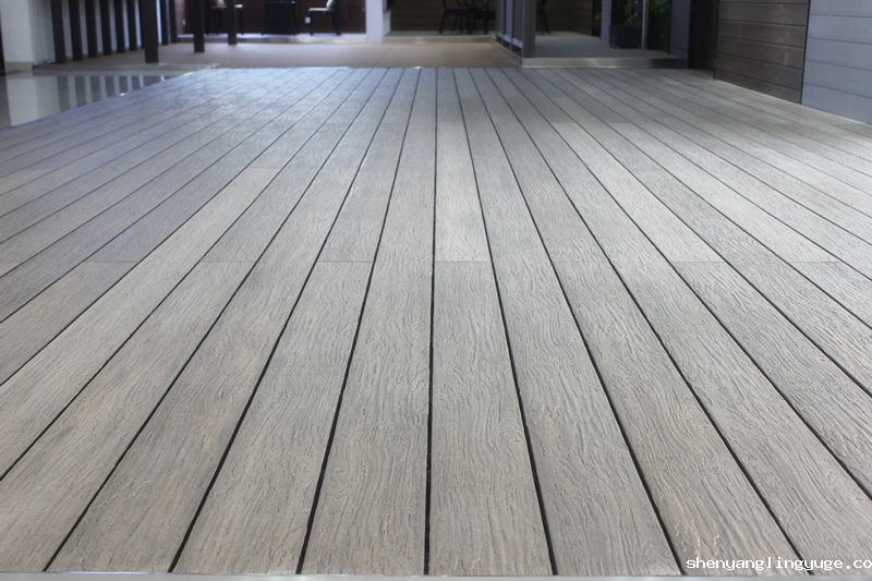 地板区域设计铺装含有共挤地板,一代普通木塑地板及深压纹系列。